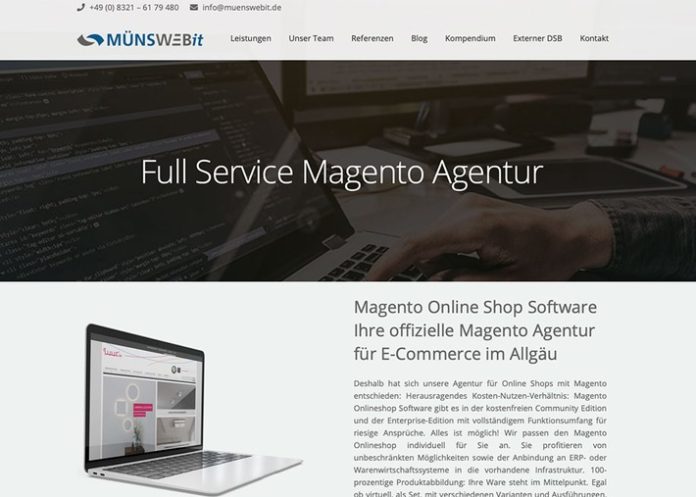 Die Magento Agentur Muenswebit ist eine inhabergeführte E-Commerce-Agentur aus Allgäu. Das Managementteam der Agentur verfügt über mehr als 10 Jahre praktische Erfahrung im Bereich E-Commerce und Community-Management. Als Full-Service-Agentur hat sich Muenswebit der Aufgabe verschrieben, E-Commerce Unternehmungen durch zukunftsweisende E-Shopping Lösungen zum Erfolg zu führen. Das Team von Muenswebit kombiniert E-Business- und E-Commerce-Kompetenzen, beherrscht klassische Methoden und Arbeitsweisen ebenso exzellent wie die Umsetzung kreativer und unkonventioneller Lösungen.