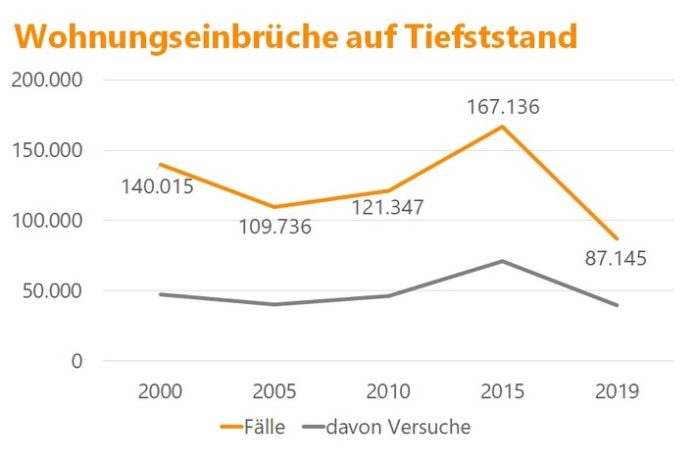 2015 hatte die Zahl der Wohnungseinbrüche mit 167.136 Fällen einen Höchststand in diesem Jahrtausend erreicht. Seitdem hat sie sich fast halbiert.