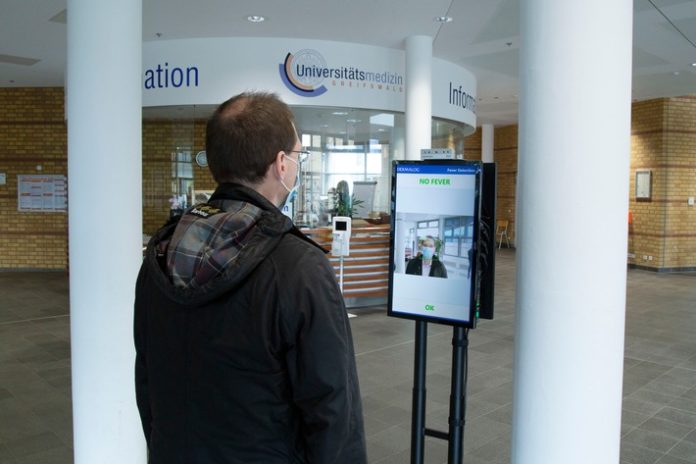 Greifswald/Hamburg (ots) – Aufgrund der Corona-Pandemie stehen Krankenhäuser und Arztpraxen vor der Herausforderung, ihren Betrieb aufrecht zu erhalten, ohne dabei Patienten und Personal einer erhöhten Ansteckungsgefahr auszusetzen. In der Universitätsmedizin Greifswald zeigt sich, dass die berührungslose Fiebererkennung von DERMALOG bei der Umsetzung von Hygienemaßnahmen im Gesundheitswesen eine zentrale Rolle spielen kann.