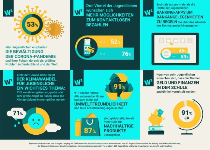 Wiesbaden (ots) – Bildungsinitiative WirtschaftsWerkstatt setzt auf digitale Bildungsformate // Schulteams erarbeiten Konzepte für die Green Economy // Umfrage unter Jugendlichen zeigt, dass Nachhaltigkeit und Klimaschutz die wichtigsten Zukunftsthemen sind // Trotz Corona-Krise schauen junge Menschen optimistisch in die Zukunft