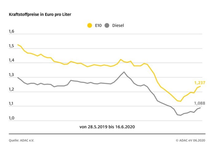 Der Preisanstieg seit den Tiefstwerten Ende April – bei Super E10 durchschnittlich rund zehn Cent, bei Diesel etwa fünf Cent – erklärt sich vor allem aus einer Verdoppelung der Rohöl-Preise von rund 20 Dollar je Barrel auf aktuell gut 40 US-Dollar.