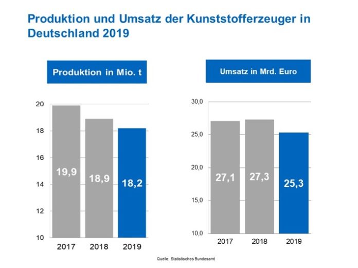Frankfurt am Main (ots) – Geschlossene Geschäfte, Reiseverbote, stillstehende Produktionsanlagen: Die Corona-Pandemie hat die globale Wirtschaft zeitweise lahmgelegt. In Europa haben das vor allem Frankreich, Spanien und Italien zu spüren bekommen. Aber auch Deutschland als wichtige Exportnation verzeichnet Einbrüche, etwa den Rückgang der Warenausfuhren im April um 31,1 Prozent gegenüber dem Vorjahresmonat. In diesem kritischen Umfeld müssen sich die kunststofferzeugenden Unternehmen behaupten. Sie tun das aus einer Phase der Schwäche heraus, wie die Kennzahlen für 2019 belegen: So sank die Produktion von Kunststoff im vergangenen Jahr um 3,9 Prozent auf 18,2 Millionen Tonnen. Damit einher ging ein Umsatzrückgang von 7,3 Prozent auf nunmehr 25,3 Milliarden Euro. Während der Export mit 1,7 Prozent moderat sank und eine Menge von 13,1 Millionen Tonnen erreichte, verzeichnete der Import von Kunststofferzeugnissen einen deutlicheren Rückgang um 4,5 Prozent auf jetzt 9,9 Millionen Tonnen.