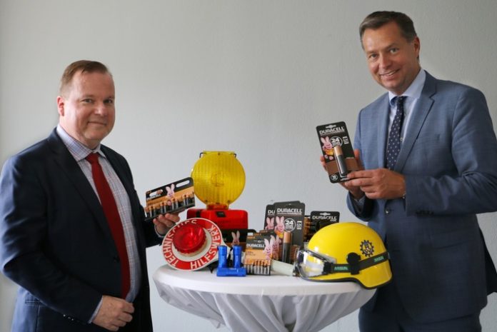 Schwalbach a. T. (ots) – Die Arbeit des THW ist in der aktuellen COVID-19 Krise wichtiger denn je. Damit die ehrenamtlichen THW-Einsatzkräfte auch weiterhin kraftvoll unterstützen können, trifft volle Energie auf geballte Power. Duracell-Geschäftsführer Andrew Plastow überreicht 33.000 Batterien und 3.400 Power Banks an den Vorstandsvorsitzenden der Stiftung THW, Stephan Mayer, MdB und parlamentarischer Staatssekretär im Bundesinnenministerium.