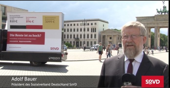Berlin (ots) – Zum 1. Juli steigen die Renten um 3,45 % in den westdeutschen und um 4,20 % in den ostdeutschen Bundesländern. Der Rentenwert West beträgt dann 34,19 EUR und der Rentenwert Ost wird weiter angeglichen. Er beträgt dann 33,23 EUR. Das Rentenniveau, also die Standardrente im Vergleich zum Durchschnittseinkommen für das Jahr 2020 wird auf 48,21 % festgesetzt. Dazu erklärt Adolf Bauer, Präsident des Sozialverband Deutschland (SoVD):