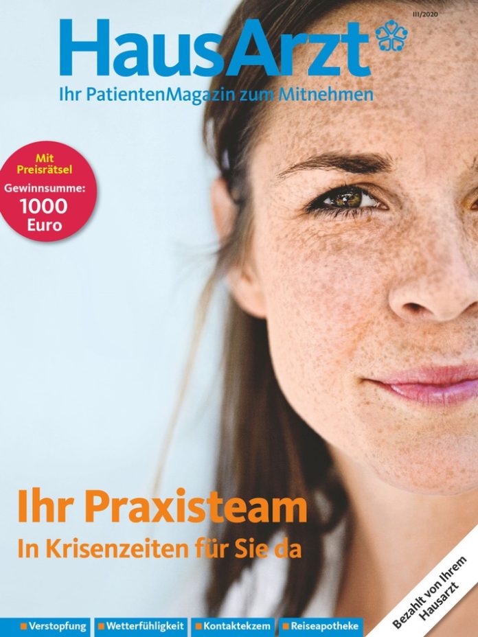 Diese Meldung ist nur mit Quellenangabe zur Veröffentlichung frei. Das Patientenmagazin „HausArzt“ gibt der Deutsche Hausärzteverband in Kooperation mit dem Wort & Bild Verlag heraus. Die Ausgabe 3/2020 wird bundesweit in Hausarztpraxen an Patienten abgegeben.