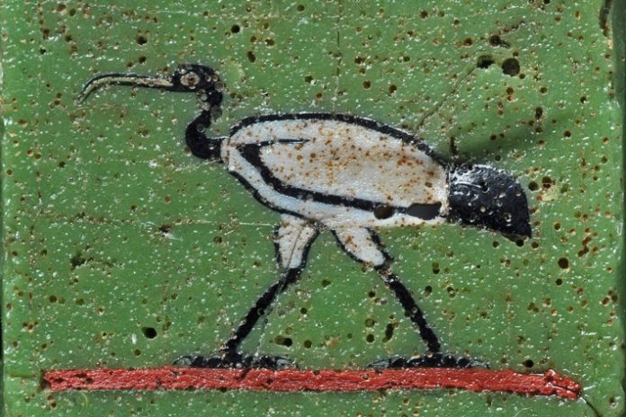 Keine zwei Zentimeter ist er groß, der schwarz-weiße Vogel auf einem römischen Miniaturmosaik aus Glas (1. Jh. v. Chr. bis 1. Jh. n. Chr.). In Ägypten wurde der Ibis als heiliges Tier von Thot, dem Gott der Weisheit, verehrt. Möglicherweise ist das kunstvolle Steinchen dort gefertigt und dann auf eine lange Reise gen Norden geschickt worden – bis in eine gallo-römische Siedlung nahe Trier.