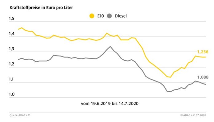 München (ots) – Die Kraftstoffpreise in Deutschland sind im Vergleich zur Vorwoche erneut leicht gesunken. Wie die aktuelle ADAC Auswertung ergibt, kostet ein Liter Super E10 an den deutschen Tankstellen im Schnitt 1,256 Euro. Das ist ein Rückgang zur Vorwoche um 0,4 Cent. Der Preis für einen Liter Diesel sank ebenfalls leicht um 0,5 Cent auf 1,088 Euro.
