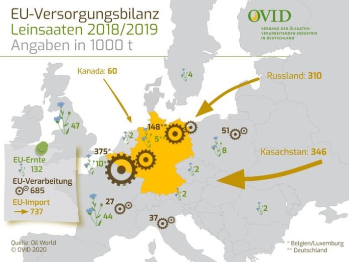 Leinsaaten sind in Europa ein knapper Rohstoff. Die Europäische Union war 2019 auf Importe von 737.000 Tonnen angewiesen. In Deutschland verarbeiteten vorwiegend mittelständische Ölmühlen im letzten Jahr rund 150.000 Tonnen; die Ernte in Deutschland betrug nur etwa 5.000 Tonnen. Dazu Detlef Volz, Geschäftsführer der Ölmühle C. Thywissen in Neuss: „Aufgrund der aktuellen Situation erleben wir bereits heute eine massive Beeinträchtigung von Leinsaaten-Einfuhren. Wenn die Politik von einer sach- und fachlichen Risikobewertung Abschied nimmt, steht der Standort der heimischen Verarbeitung auf dem Spiel.“
