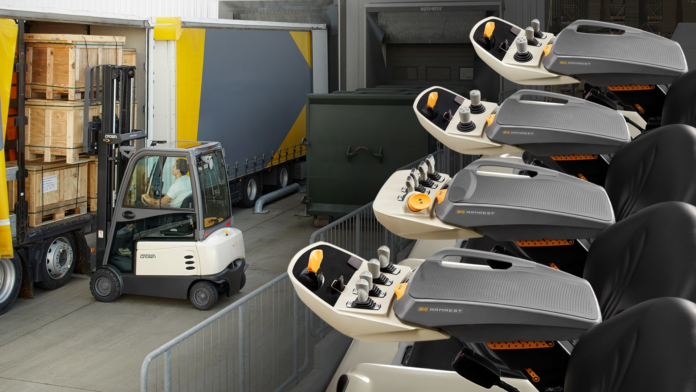 Crown integriert die prämierte D4 Armlehne in alle Gegengewichtstapler mit Fahrersitz