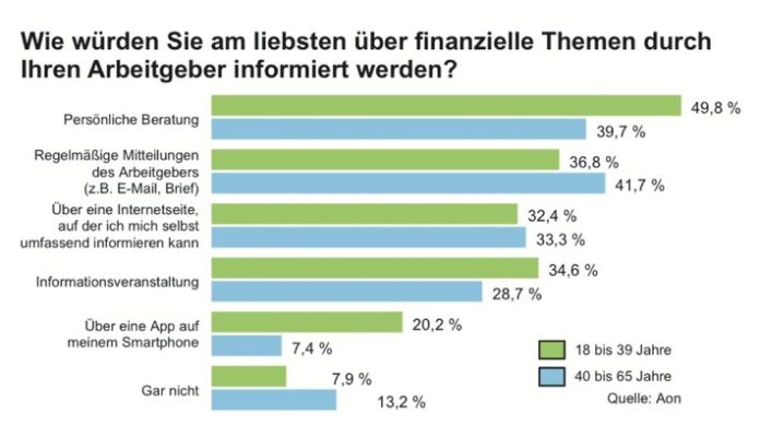 Persönliche Beratung sticht App / Aon Studie: Gerade jüngere Mitarbeiter bevorzugen bei finanziellen Themen persönliche Beratung durch Arbeitgeber
