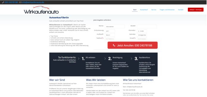 Wer seinen Gebrauchtwagen in Berlin verkaufen möchte, hat die Wahl zwischen einem Verkauf unter Privatleuten und der Veräußerung an einen professionellen Autoankauf. Während ein Verkauf an Privatpersonen die Gefahr zahlreicher Fallstricke birgt, ist der Verkäufer bei einem seriösen Autohändler in der Regel vor späteren Komplikationen geschützt. Ein weiterer Vorteil des Verkaufs an einen Autohändler besteht darin, dass der Verkauf meist innerhalb weniger Stunden abgewickelt wird.