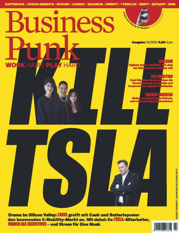 Das US-Startup Lucid will laut dem Wirtschaftsmagazin Business Punk (Heft 2/2021, EVT 8. April) mit seinem später im Jahr erscheinenden E-Serienfahrzeug Lucid Air den Konkurrenzkampf um das Premium-Segment in der Elektromobilität eröffnen. Dazu ist für die kommenden Monate ein Börsengang geplant, um die nötigen Finanzmittel in die Kassen zu spülen. Für Lucid, das als reines Batterieunternehmen gestartet ist, ist dies der erste Schritt in den Endverbrauchermarkt.