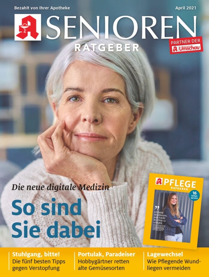 Diese Meldung ist nur mit Quellenangabe zur Veröffentlichung frei. Das Apothekenmagazin „Senioren Ratgeber“ 04/2021 liegt aktuell in den meisten Apotheken aus. Viele weitere interessante Gesundheits-News gibt es unter https://www.senioren-ratgeber.net sowie auf Facebook (https://www.facebook.com/seniorenratgeberDE/).