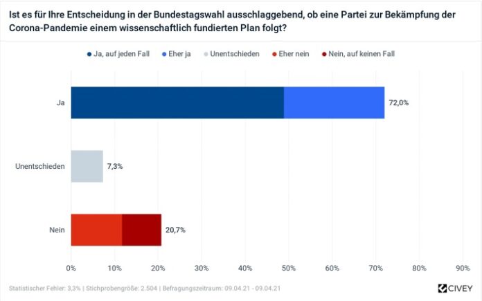 „Ist es für Ihre Entscheidung in der Bundestagswahl ausschlaggebend, ob eine Partei zur Bekämpfung der Corona-Pandemie einem wissenschaftlich fundierten Plan folgt?“.
