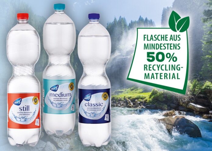 Nürnberg (ots) – In Sachen Nachhaltigkeit kann jetzt erst recht kaum ein Lebensmittel-Discounter NORMA das Wasser reichen. Denn das Nürnberger Unternehmen geht mit kleinen Anpassungen im Sortiment weiter große Schritte hin zu einer ressourcenschonenden Zukunft. Künftig wird das beliebte Mineralwasser der NORMA-Eigenmarke SURF in zahlreichen Filialen in neuen Flaschen angeboten. Sie bestehen dann zu 50 Prozent aus dem sogenannten „rPET“. Dabei handelt es sich um bereits recyceltes Plastik aus der Kreislaufwirtschaft.