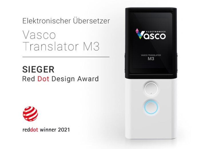 Mit über 18.000 Einreichungen und 51 Kategorien ist der Red Dot Award einer der größten Designwettbewerbe der Welt. Bewertungskriterien sind neben der formalen Qualität auch Maßstäbe wie Ergonomie und Langlebigkeit. In der Kategorie „Kommunikationstechnik – Übersetzer“ kürte die internationale Jury aus rund 50 Fachleuten 2021 das Produkt von Vasco Electronics zum Sieger.
