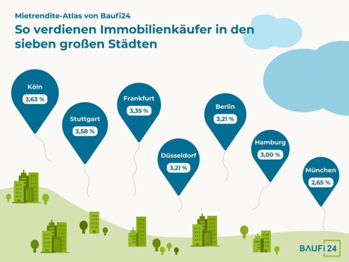 Hamburg (ots) – Immobilien als Kapitalanlage lohnen sich in Köln und Berlin mehr als in München. Bei den Universitätsstädten verspricht Göttingen die höchsten Mietrenditen und bei den Boom-Städten liegt Potsdam ganz vorn. Das ergibt eine Auswertung des Mietrenditeatlasses von Baufi24 (https://www.baufi24.de/).