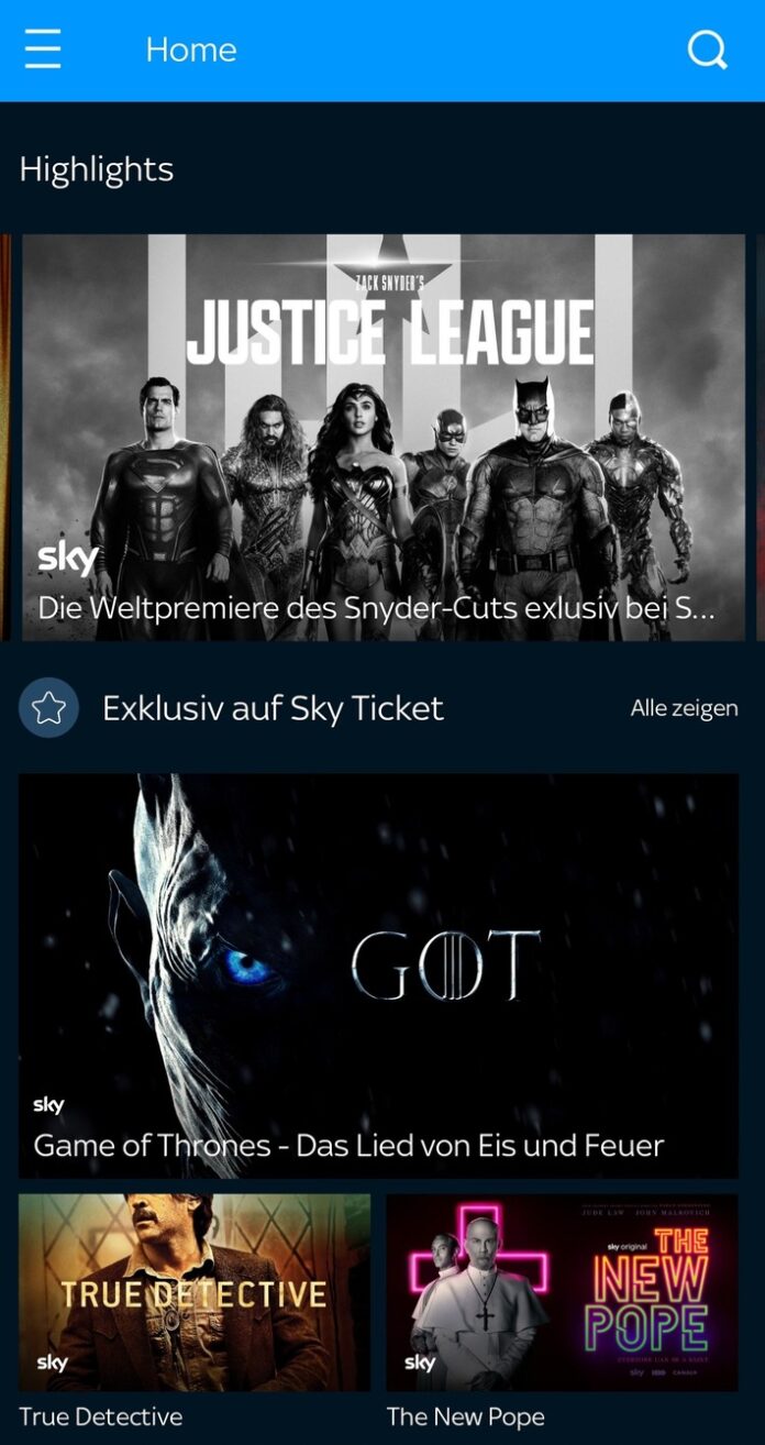 Film- und Serienfans streamen mit Sky Ticket jederzeit ohne lange Vertragsbindung mehr als 1.000 Filme, Blockbuster-Serien von HBO, Fox und TNT sowie preisgekrönte Sky Originals.