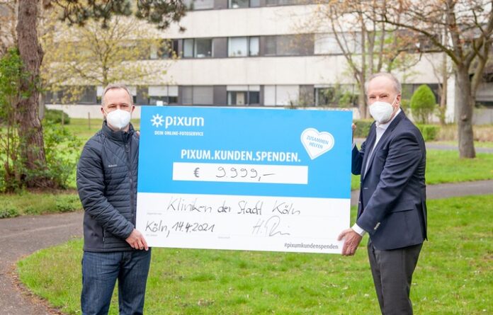 Köln (ots) – Mit einem außergewöhnlichen Spendenbetrag möchte der Online-Fotoservice Pixum im Namen seiner Kunden dort helfen, wo Menschen jeden Tag einen besonderen Einsatz gegen die Folgen der Corona-Pandemie leisten. Im Rahmen der Aktion „Pixum.Kunden.Spenden.“ überreichte Holger Plorin, Mitglied der Geschäftsleitung von Pixum, nun einen Scheck über 9.999 Euro an Holger Baumann, Geschäftsführer der Kliniken Köln. Jeweils 3.333 Euro kommen somit den drei Krankenhäusern der Kliniken Köln in Holweide, Merheim und dem Kinderkrankenhaus Amsterdamer Straße zugute.