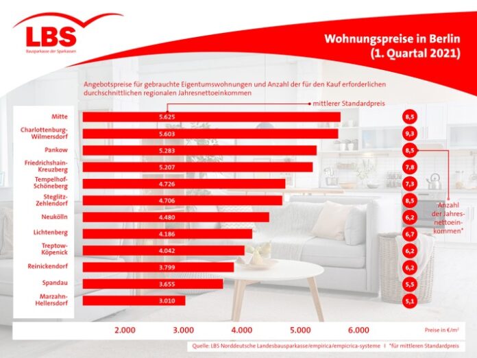 Die Analyse der Berliner Wohnungspreise im ersten Quartal 2021 hat das Institut empirica im Auftrag der LBS Norddeutsche Landesbausparkasse Berlin – Hannover (LBS Nord) erstellt. Für die regelmäßig erscheinende Untersuchung werten die Immobilienforscher die Inserate in den Berliner Tageszeitungen und in Online-Portalen aus.