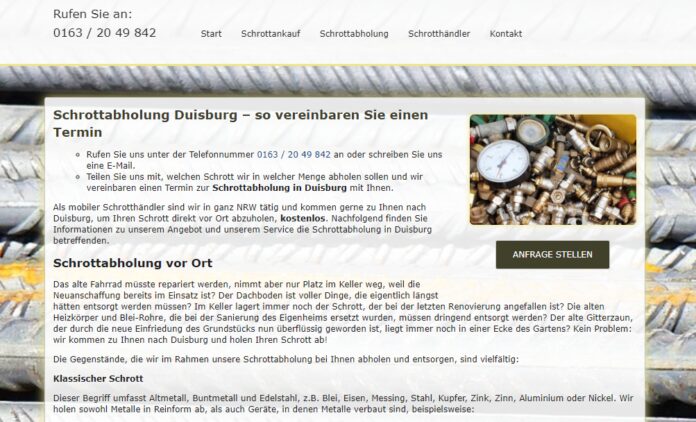 Mehr Informationen finden Sie unter : https://www.schrott-ankauf-nrw.de/schrottabholung-duisburg.html