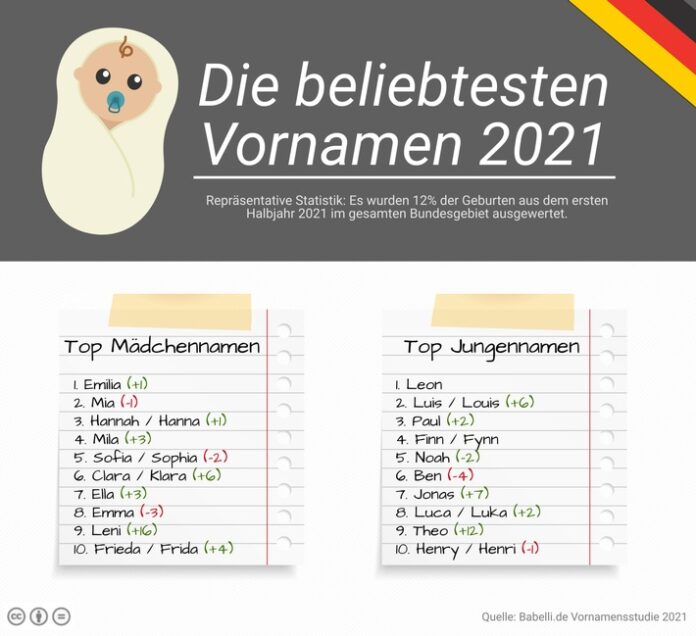 Über die Studie: Ausgewertet wurden 45.391 Geburtsmeldungen aus Krankenhäusern und Geburtshäusern im Zeitraum Anfang Januar bis Ende Juni 2021. Aufgrund der hohen Fallzahl und Stichproben aus allen Postleitzahlbereichen in Deutschland ist diese Statistik als repräsentativ anzusehen. An der Auswertung beteiligt waren 6 Mitarbeiter des Onlineportals Babelli.de. Die Auswertungen zur Beliebtheit von Vornamen erfolgt immer zweimal jährlich.