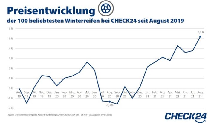 Preise für Winterreifen im August 2021 sechs Prozentpunkte über Vorjahresmonat