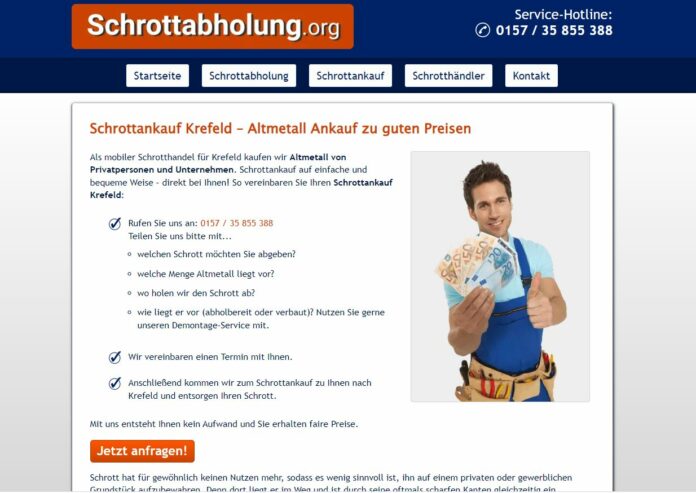 Der Schrottankauf Krefeld ermöglicht es auch Privatpersonen, ihren Schrott zu Top-Konditionen loszuwerden. Auf der Grundlage der am Tag der Abholung geltenden Kurse erstellt der Schrottankauf Krefeld sein Angebot und zahlt den Schrott mittels Barzahlung.