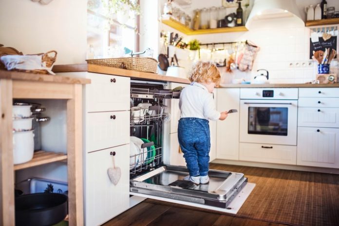 offene Geschirrspültür. Und selbst Babys, die drehen sich schneller auf dem