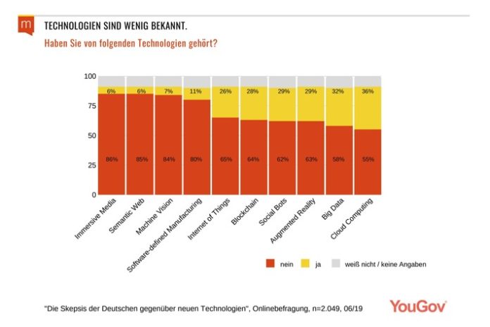 Abgefragt wurde der Kenntnisstand zu insgesamt zehn Technologien. Die Kernfrage