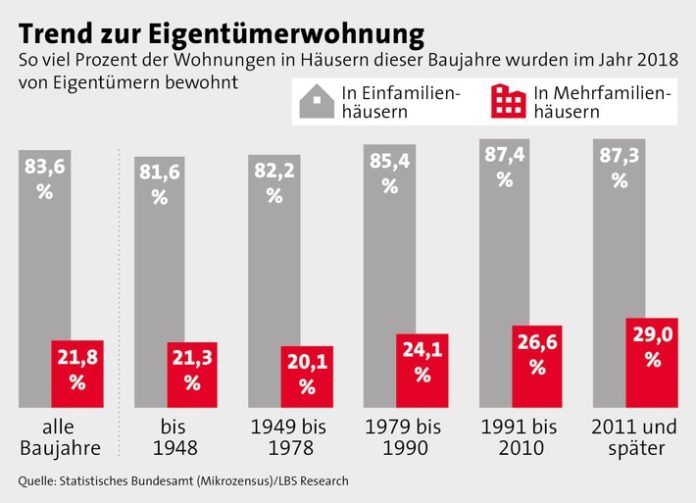 In Mehrfamilienhäusern ab Baujahr 2011 beträgt die sogenannte Eigentümerquote