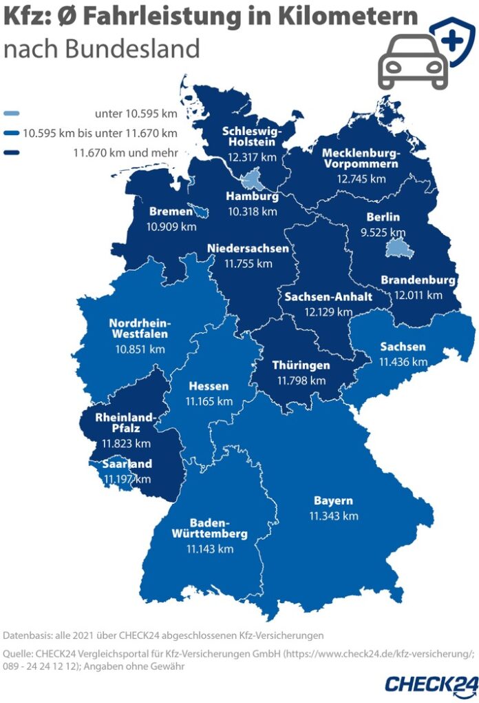 Im Bundesdurchschnitt liegt die bei der Kfz-Versicherung vorab angegebene Fahrleistung bei 11.226 Kilometern.