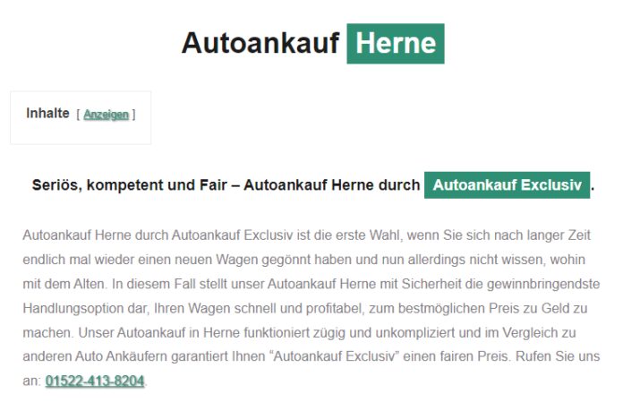 Wenn Sie einen zuverlässigen und ehrlichen Autohändler im Raum Herne suchen, sind Sie bei Autoankauf Exclusiv genau richtig. Autoankauf Exclusiv hat sich nicht nur in Herne, sondern bundesweit auf den Autohandel spezialisiert. Sie haben landesweit Experten, die jedes Auto mit größter Sorgfalt bewerten, um sicherzustellen, dass jeder Kunde es kann.