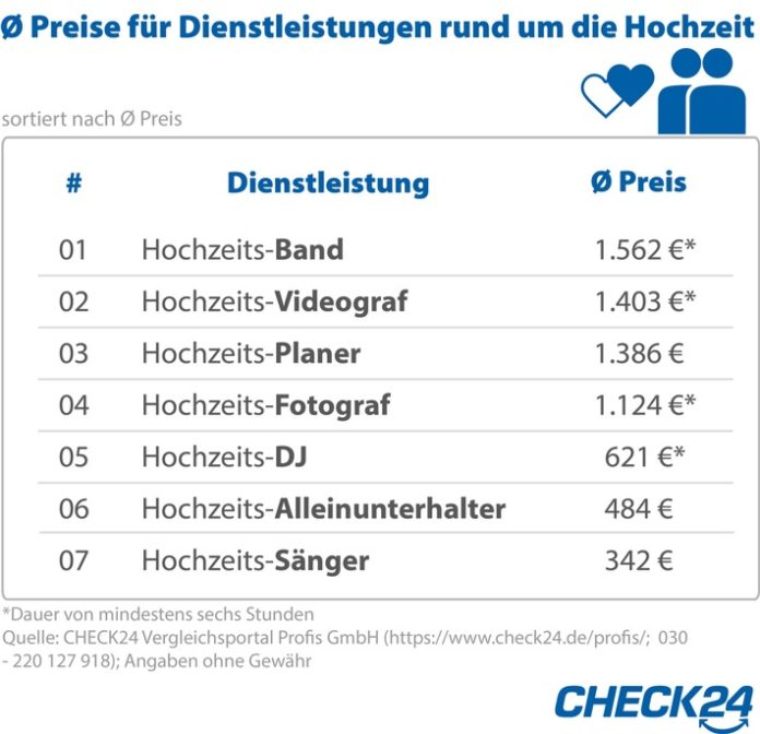 (https://www.check24.de/profis/hochzeit/) Hochzeitsplaner. Im Schnitt kosten die