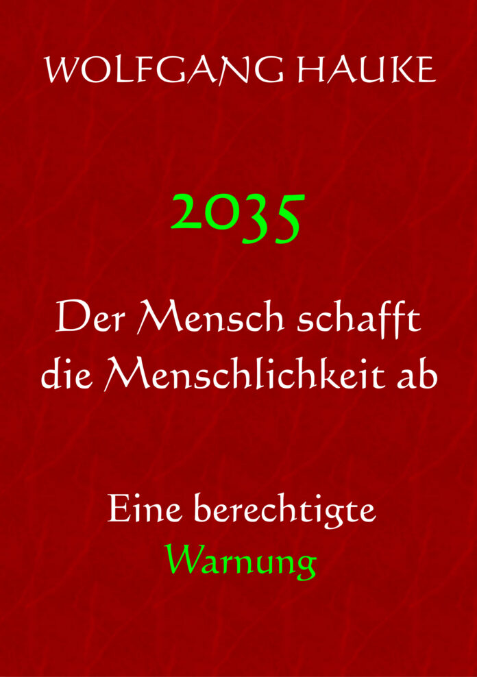 Eine weiter führende Beschäftigung mit dieser aus einer dreißigjährigen Forschungsarbeit resultierenden Schlussfolgerung, ermöglicht die Internetseite www.2035-der-mensch-schafft-die-menschlichkeit-ab.de und das Buch: „Die notwendige ideologische Reinigung des Menschen“. Sie erhalten das Taschenbuch (ISBN 978-3-75625-891-8) und das E-Book (ISBN 978-3-9876-2252-6) im Buchhandel.