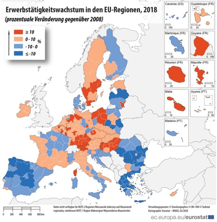 Luxemburg (ots) – Im Jahr 2018 stieg die Erwerbstätigkeit in 208 der 240