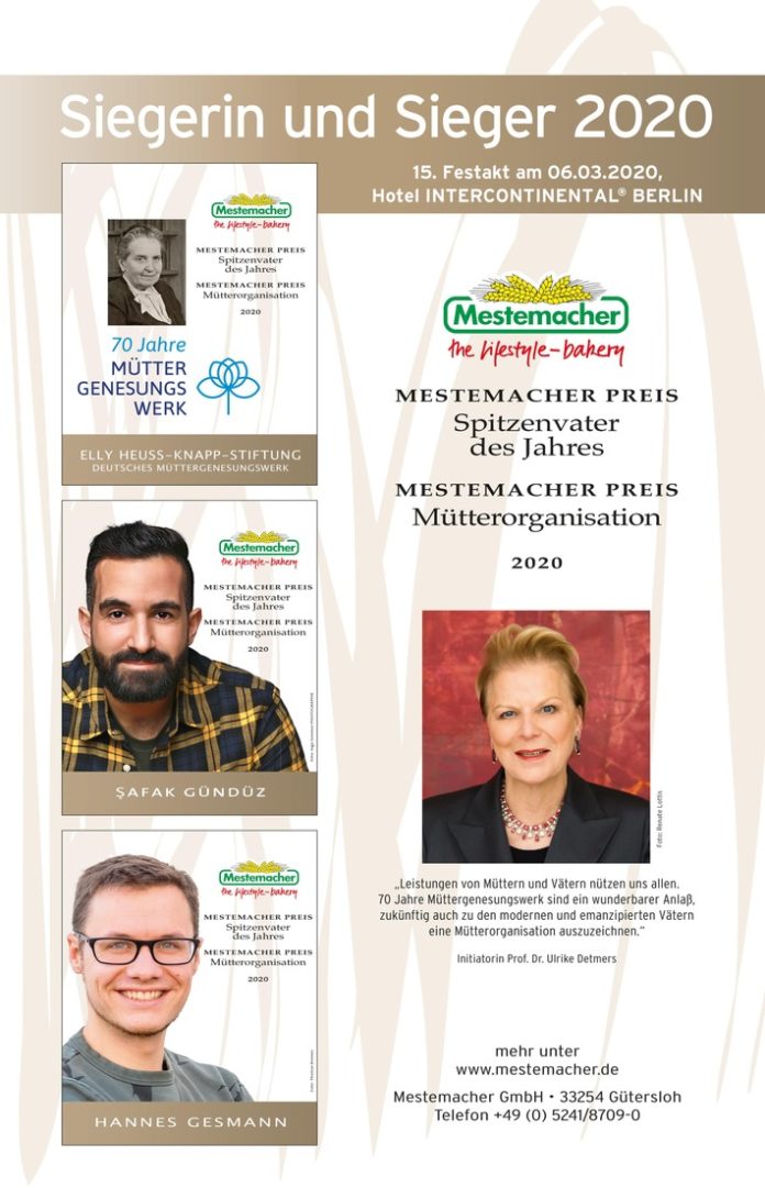deshalb sehr, dass das Müttergenesungswerk für den Mestemacher-Preis für