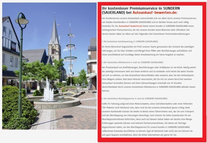 Wer sich bereits für einen Neuwagen entschieden hat, möchte seinen Gebrauchten möglichst schnell und ohne viel Aufwand verkaufen. Hierfür ist der Autoankauf Sundern der perfekte Ansprechpartner, da dieser Händler Gebrauchtwagen aller Fabrikate zu Bestpreisen und unter Verzicht auf Sachmängelhaftung ankauft.