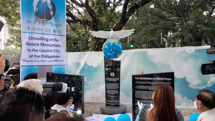 MANILA – Am 24. Januar 2023 wurde auf der Plaza Asuncion in Malate ein Friedensdenkmal enthüllt, um die Beendigung der Kriege und die Verwirklichung des Friedens zu unterstützen. Es ist das erste seiner Art, das in der Landeshauptstadt sowie im regionalen Zentrum der Landeshauptstadtregion errichtet wurde.