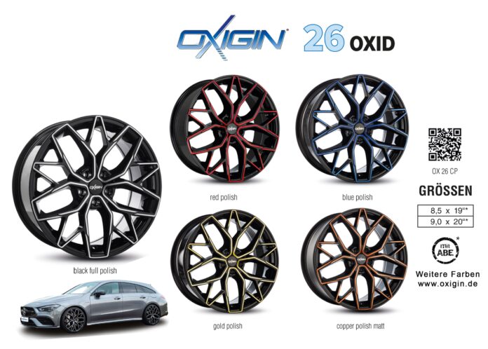 Der für seine farbigen, modernen Alufelgen und in Tuning-Szene bekannte Felgenhersteller AD Vimotion, mit den Marken Oxigin und Carmani aus Scharnhausen, hat ab Frühjahr 2023 ein neues Alufelgenmodell – Oxigin 26 OXID im Programm.