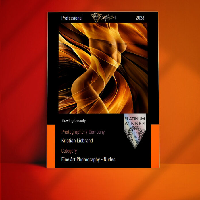 Am 14.04.2023 hat die internationale Fachjury Liebrands Werk „flowing beauty“ die höchste Auszeichnung – den Platin Award – in der Kategorie „Fine Art N u d e s, professional“ verliehen.