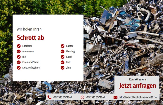 Die Schrottabholung in Köln von Schrottabholung-nrw24 steht für nachhaltiges Schrott-Recycling und eine saubere Umwelt. Schrottabholung-nrw24 bieten seinen Kunden eine kostenlose Abholung von Schrott und Altmetallen jeglicher Art an und sorgen für eine fachgerechte Entsorgung. Dabei legen Schrottabholung Köln besonderen Wert auf eine umweltschonende Wiederverwertung und tragen somit zur Schonung von Ressourcen bei. Der Service umfasst nicht nur die Abholung von Altmetallen und Schrott, sondern auch eine Beratung zur Schrottabgabe. Kontaktieren Sie Schrottabholung-nrw24 und lassen Sie gemeinsam einen Beitrag für eine saubere und nachhaltige Umwelt leisten.