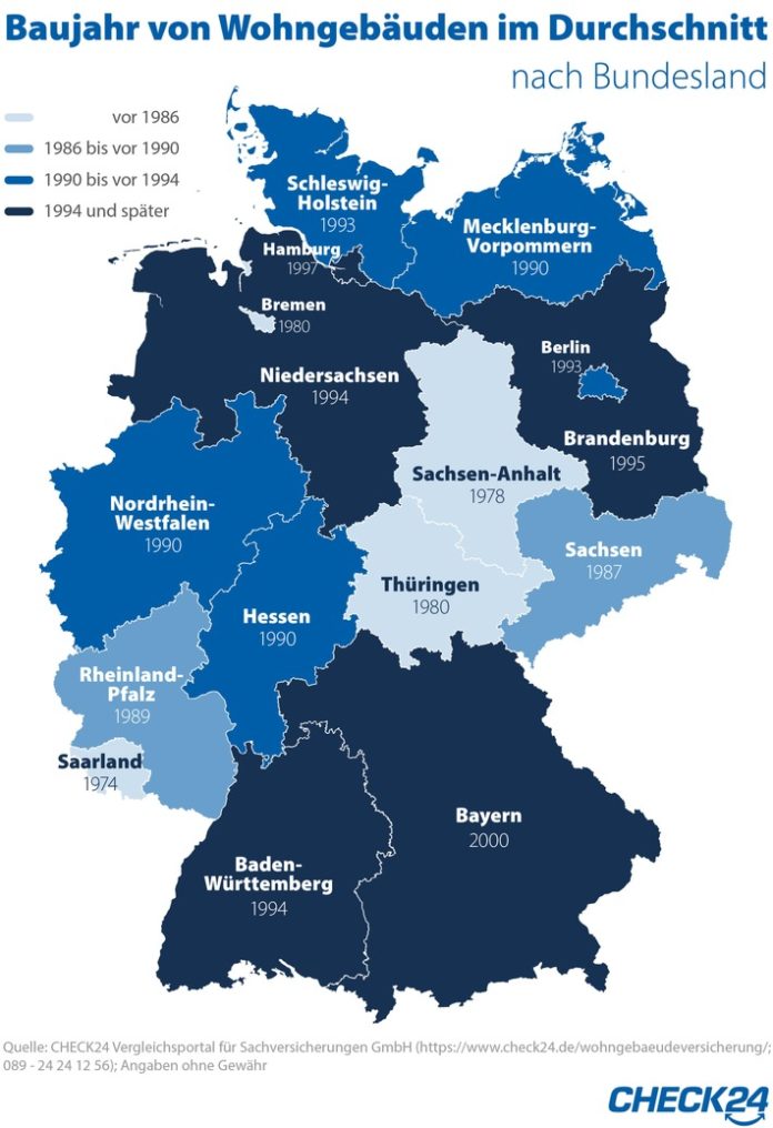 Die ältesten Immobilien stehen im Saarland. Durchschnittlich gaben