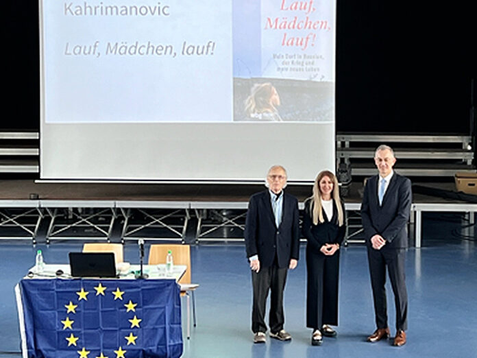 Um die Zeitzeugenstrategie in Bayern umzusetzen, startete Mirsada Simchen-Kahrimanović einen Auftakt am Ammersee Gymnasium Dießen. Während der Demokratiewoche regte sie an, über die Verantwortung für Europas Zukunft nachzudenken. Sie betonte, dass Europa als Dach der Demokratie auf Werten wie Toleranz, Empathie und Solidarität basiert. Ihre Worte ermutigten 100 Schülerinnen und Schüler, mit persönlichem Engagement eine Gesellschaft zu formen, in der europäische Werte gelebt werden. Während der Diskussion wurde deutlich, dass viele junge Menschen das Bedürfnis haben, ebenso über Sorgen zu reden wie über die Wahrnehmung der politischen Lage in der EU sowie die Frage, was Heranwachsende zum europäischen Frieden beitragen können. Die Antwort ist ein Plädoyer für Akzeptanz und Wertschätzung unterschiedlicher Völker, Religionen und Kulturen.