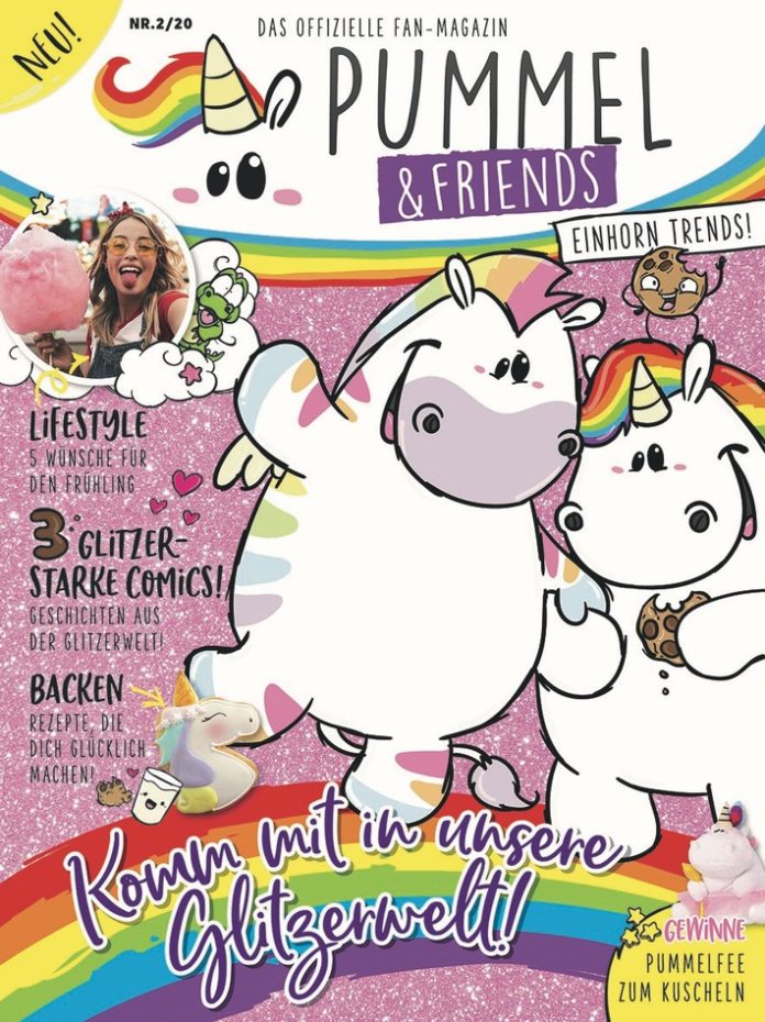 Berlin (ots) – Ab dem 2. April wirds flauschig im Magazin-Regal: Mit „Pummel & Friends“ erscheint das offizielle Magazin zum großen Pummeleinhorn-Erfolg. Die Neuerscheinung ist vollgepackt mit glitzerstarken Einhorn-Trends, pummeligen Bastelideen und flauschigen Mode- und Lifestyle-Tipps. Zudem gibt’s witzige Comics mit den Bewohnern der Glitzerwelt sowie zuckersüße Ideen zum Backen und Malen.