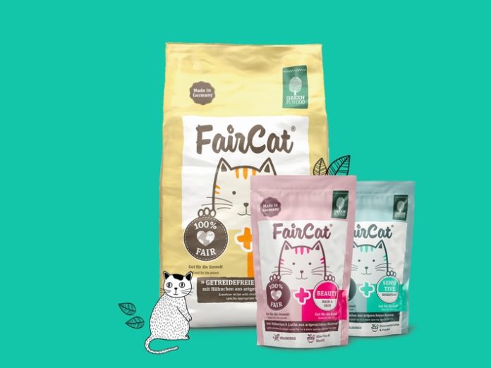 Kleinheubach (ots) – Immer mehr Menschen achten im Alltag auf umweltbewusstes Verhalten. Viele beginnen ihren Weg zu einem nachhaltigeren Leben über die Ernährung und nehmen neben den eigenen Lebensmitteln auch das Futter der geliebten Vierbeiner unter die Lupe. Katzenhaltern mit grünem Herz bietet die Marke Green Petfood seit 2019 eine Möglichkeit, sowohl der Umwelt als auch dem Wohle der Katze gerecht zu werden: FairCat, das erste nachhaltige Katzenfutter mit positiver Ökobilanz und Super Premium Qualität, hat bereits zahlreiche Katzen glücklich gemacht und konnte in einer kürzlich durchgeführten Abstimmung auch den Zoofachhandel als „Produkt des Jahres“ überzeugen.