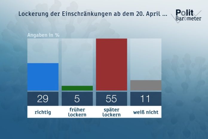 ZDF-Politbarometer April I 2020 / Mehrheit zurückhaltend bei Lockerung der Corona-Maßnahmen / Weiterhin große Zufriedenheit mit Krisenmanagement der Regierung