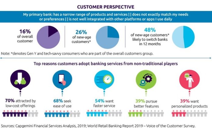 Aus der Studie geht hervor, dass das Frontend-Erlebnis auf der Zielgeraden (z.B. Verpackung und Lieferung von Produkten an die Kunden) derzeit zu kurz kommt, was zu Unzufriedenheit führt. Kunden haben häufig das Gefühl, von ihrer Bank keine personalisierten Angebote zu erhalten (50 Prozent) oder auf verschiedenen Händler-Websites keine Lastschrift-Zahlungen vornehmen zu können (60 Prozent). 48 Prozent der New-Age-Kunden (Generation Y und technisch versierte Personen) sind frustriert über die kleine Produktpalette und Dienstleistungen, die von ihrer traditionellen Hausbank angeboten werden, was sie dazu veranlasst, innerhalb des nächsten Jahres zu New-Age-Anbietern zu wechseln. Sie suchen Dienstleistungen, die ihren Präferenzen entsprechen und sich in ihre anderen Plattformen/Anwendungen integrieren lassen. Es ist unerlässlich, die Wertschöpfungskette vom Front- bis zum Backend zu verbessern. Dadurch können die Banken an der Open-X-Bewegung teilnehmen und das Umsatz- und Gewinnwachstum verbessern, die Produktivität steigern, das Kundenengagement erhöhen, die Kosten senken, die Transparenz erhöhen und schließlich die Mitarbeiterzufriedenheit steigern.