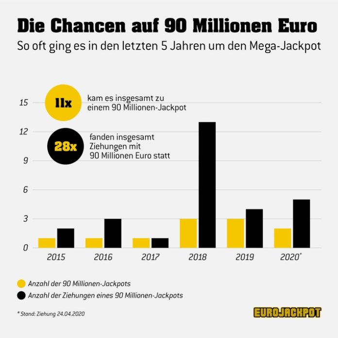 Wenn man sich das bisherige Jahr 2020 anschaut, könnte man den Eindruck bekommen, dass 90-Millionen-Jackpots die Regel sind. Schon einmal, am 7. Februar, wurde die oberste Gewinnklasse in diesem Jahr geknackt. Eine Person aus Nordrhein-Westfalen gewann an jenem Tag 90 Millionen Euro.