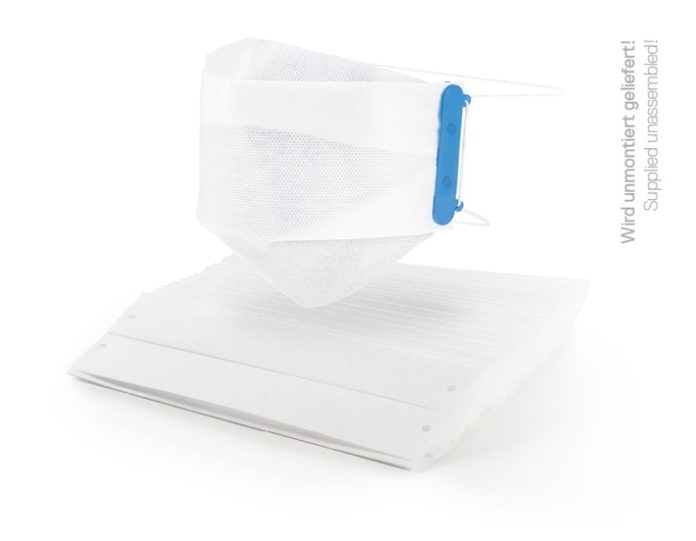Die Besonderheit: „Durch die mehrfach verwendbaren Multiclips muss nicht zwingend die komplette Maske nach dem Gebrauch entsorgt werden. Das benutzte Schutzvlies wird einfach gegen ein neues Vlies getauscht, die seitlichen Clips und das Halteband können bei Bedarf mehrfach verwendet werden“, erläutert Ehling.